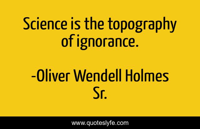 "Oliver Wendell Holmes Sr. Quotes." Quoteslyfe.com, 2025. Sun. 07 Dec. 2025. <https://www.quoteslyfe.com/quote/Science-is-the-topography-of-ignorance-41867>.
