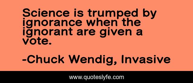 This page presents the quote "Science is trumped by ignorance when the ignorant are given a vote.". Author of this quote is Chuck Wendig, Invasive. This quote is about vote, science, ignorance,.