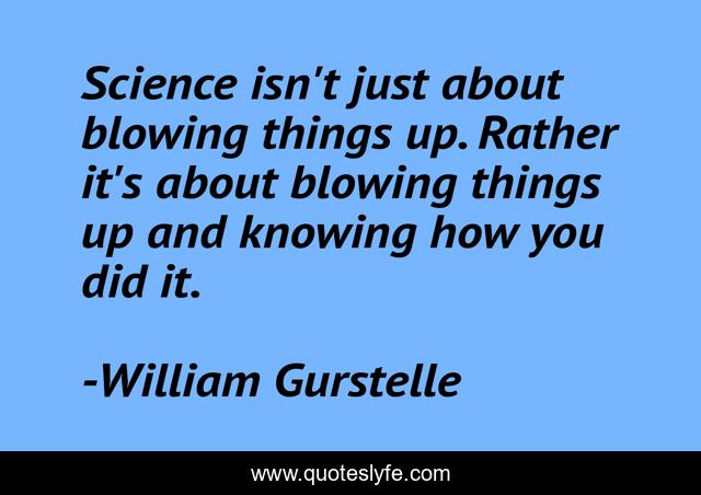This page presents the quote "Science isn't just about blowing things up. Rather it's about blowing things up and knowing how you did it.". Author of this quote is William Gurstelle. .