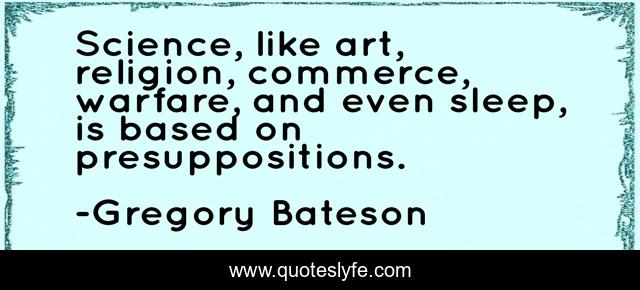 This page presents the quote "Science, like art, religion, commerce, warfare, and even sleep, is based on presuppositions.". Author of this quote is Gregory Bateson. This quote is about art, sleep, religion,.
