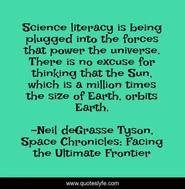 "Neil deGrasse Tyson, Space Chronicles: Facing the Ultimate Frontier Quotes." Quoteslyfe.com, 2025. Fri. 05 Dec. 2025. <https://www.quoteslyfe.com/quote/Science-literacy-is-being-plugged-into-the-169905>.
