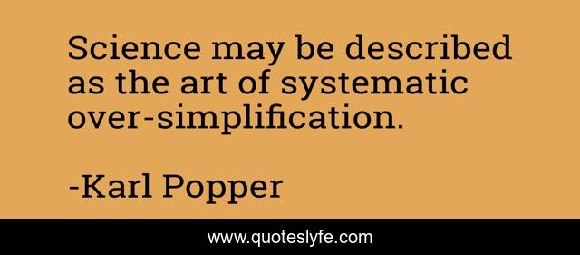 This page presents the quote "Science may be described as the art of systematic over-simplification.". Author of this quote is Karl Popper. This quote is about may, art, systematic,.