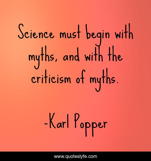 This page presents the quote "Science must begin with myths, and with the criticism of myths.". Author of this quote is Karl Popper. This quote is about criticism, begin,.