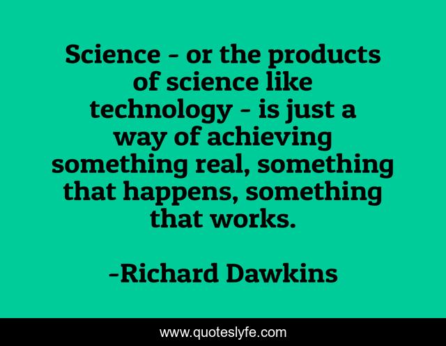 This page presents the quote "Science - or the products of science like technology - is just a way of achieving something real, something that happens, something that works.". Author of this quote is Richard Dawkins. This quote is about science, products, achieving,.