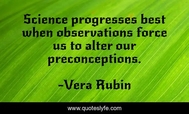 This page presents the quote "Science progresses best when observations force us to alter our preconceptions.". Author of this quote is Vera Rubin. This quote is about force, best, us,.