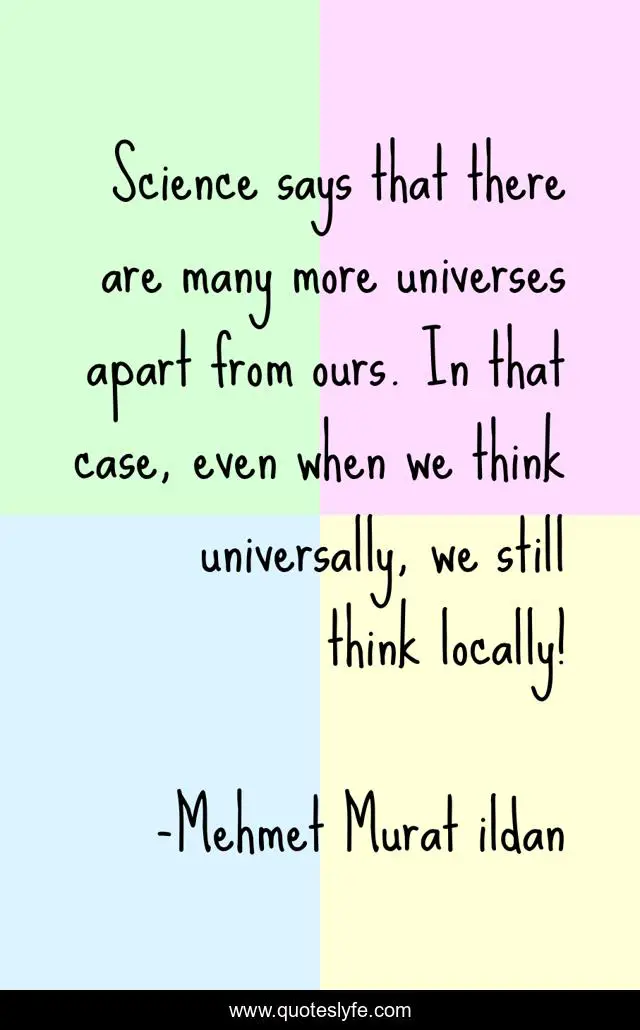 This page presents the quote "Science says that there are many more universes apart from ours. In that case, even when we think universally, we still think locally!". Author of this quote is Mehmet Murat ildan. .