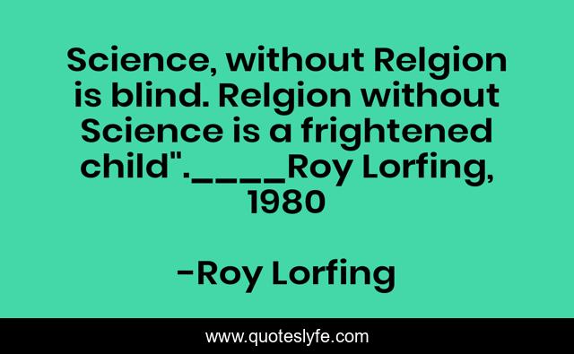 This page presents the quote "Science, without Relgion is blind. Relgion without Science is a frightened child".____Roy Lorfing, 1980". Author of this quote is Roy Lorfing. .