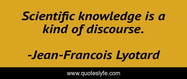 This page presents the quote "Scientific knowledge is a kind of discourse.". Author of this quote is Jean-Francois Lyotard. This quote is about kind, knowledge, discourse,.
