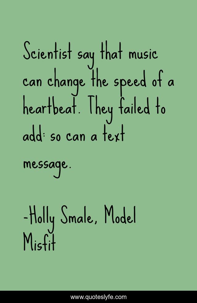 This page presents the quote "Scientist say that music can change the speed of a heartbeat. They failed to add: so can a text message.". Author of this quote is Holly Smale, Model Misfit. This quote is about funny, life, family, young-adult-romance, geek, girl, comedy, model,.