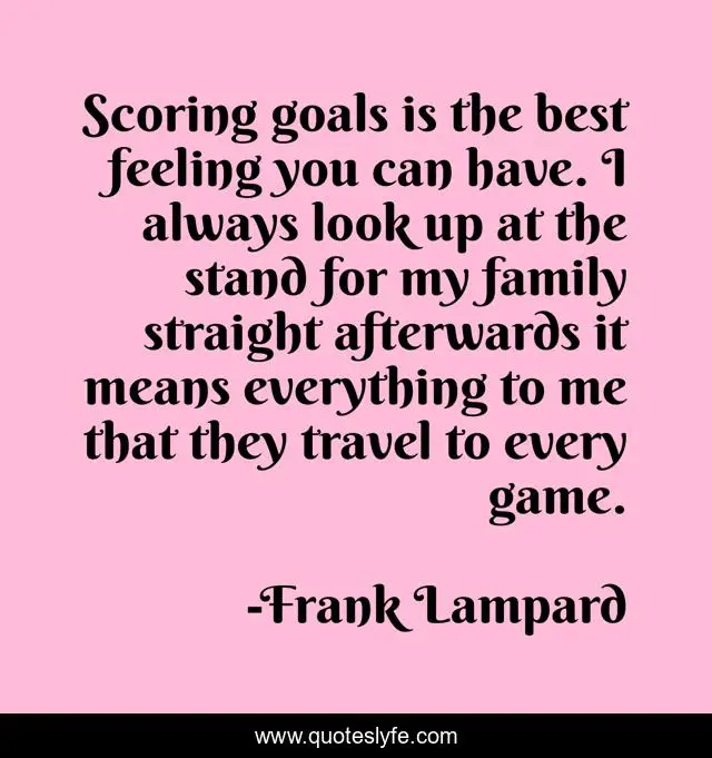 This page presents the quote "Scoring goals is the best feeling you can have. I always look up at the stand for my family straight afterwards it means everything to me that they travel to every game.". Author of this quote is Frank Lampard. This quote is about family, goals, best,.