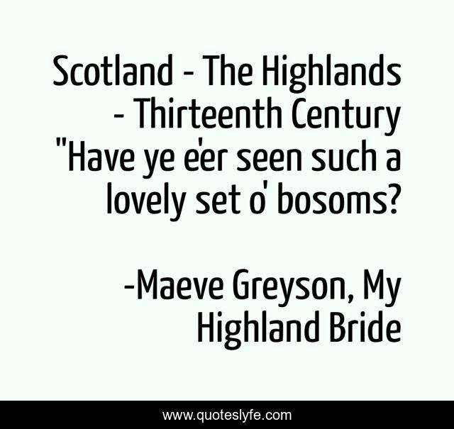 "Maeve Greyson, My Highland Bride Quotes." Quoteslyfe.com, 2025. Mon. 08 Dec. 2025. <https://www.quoteslyfe.com/quote/Scotland-The-Highlands-Thirteenth-Century-Have-ye-252373>.