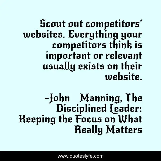"John Manning, The Disciplined Leader: Keeping the Focus on What Really Matters Quotes." Quoteslyfe.com, 2025. Fri. 05 Dec. 2025. <https://www.quoteslyfe.com/quote/Scout-out-competitors-websites-Everything-your-competitors-128593>.