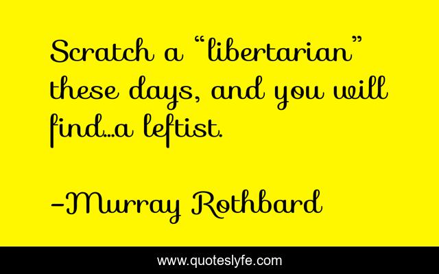 This page presents the quote "Scratch a “libertarian” these days, and you will find...a leftist.". Author of this quote is Murray Rothbard. This quote is about politics, libertarianism,.