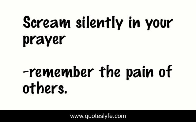 "remember the pain of others. Quotes." Quoteslyfe.com, 2025. Mon. 08 Dec. 2025. <https://www.quoteslyfe.com/quote/Scream-silently-in-your-prayer-115173>.