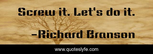 This page presents the quote "Screw it. Let's do it.". Author of this quote is Richard Branson. This quote is about enthusiasm, inspirational, entrepreneurship,.