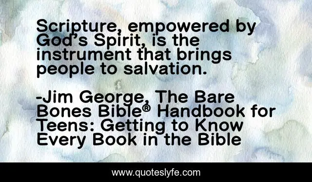 This page presents the quote "Scripture, empowered by God’s Spirit, is the instrument that brings people to salvation.". Author of this quote is Jim George, The Bare Bones Bible® Handbook for Teens: Getting to Know Every Book in the Bible. This quote is about jim-george, god, empowered, scripture, salvation, spirit,.