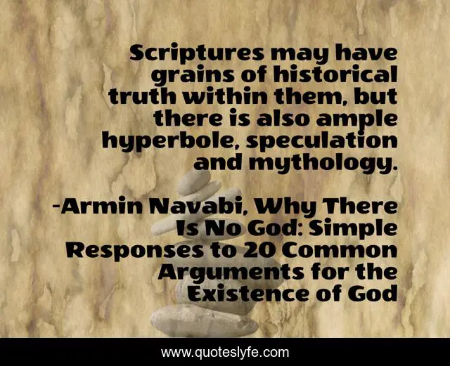 "Armin Navabi, Why There Is No God: Simple Responses to 20 Common Arguments for the Existence of God Quotes." Quoteslyfe.com, 2025. Sun. 07 Dec. 2025. <https://www.quoteslyfe.com/quote/Scriptures-may-have-grains-of-historical-truth-175896>.