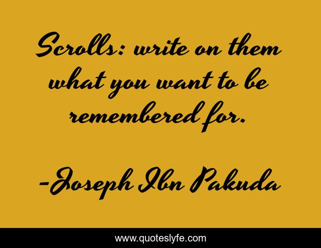 "Joseph Ibn Pakuda Quotes." Quoteslyfe.com, 2025. Fri. 05 Dec. 2025. <https://www.quoteslyfe.com/quote/Scrolls-write-on-them-what-you-want-271970>.