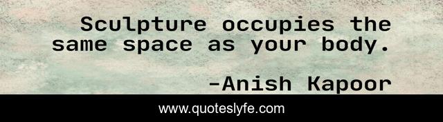 This page presents the quote "Sculpture occupies the same space as your body.". Author of this quote is Anish Kapoor. This quote is about body, sculpture, same,.