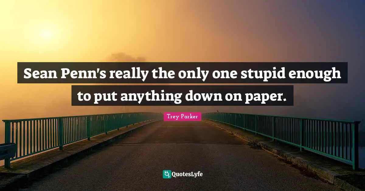 This page presents the quote "Sean Penn's really the only one stupid enough to put anything down on paper.". Author of this quote is Trey Parker. This quote is about paper, stupid, enough, sean,.