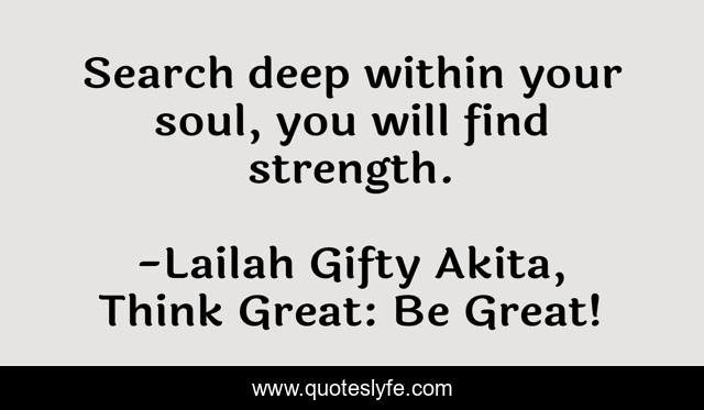 "Lailah Gifty Akita, Think Great: Be Great! Quotes." Quoteslyfe.com, 2025. Mon. 08 Dec. 2025. <https://www.quoteslyfe.com/quote/Search-deep-within-your-soul-you-will-78472>.