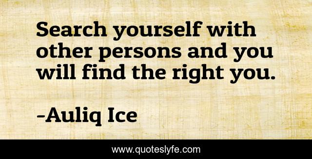 "Auliq Ice Quotes." Quoteslyfe.com, 2025. Mon. 08 Dec. 2025. <https://www.quoteslyfe.com/quote/Search-yourself-with-other-persons-and-you-106146>.
