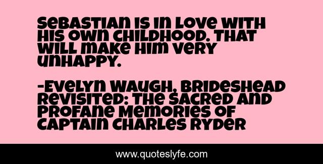 This page presents the quote "Sebastian is in love with his own childhood. That will make him very unhappy.". Author of this quote is Evelyn Waugh, Brideshead Revisited: The Sacred and Profane Memories of Captain Charles Ryder. This quote is about introspection, nostalgia,.
