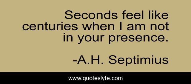 This page presents the quote "Seconds feel like centuries when I am not in your presence.". Author of this quote is A.H. Septimius. This quote is about lust, relationships, love, affection,.