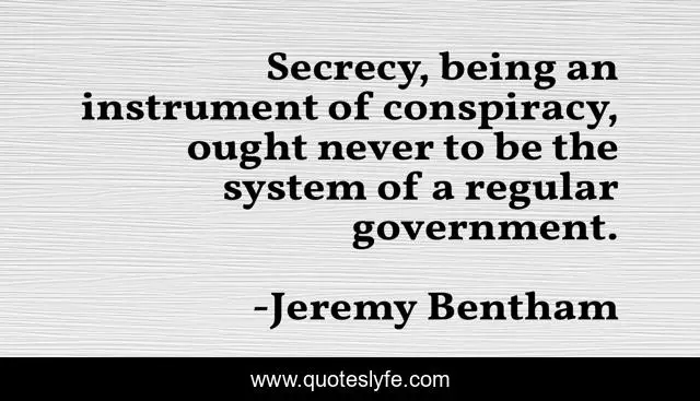 "Jeremy Bentham Quotes." Quoteslyfe.com, 2025. Mon. 08 Dec. 2025. <https://www.quoteslyfe.com/quote/Secrecy-being-an-instrument-of-conspiracy-ought-320745>.