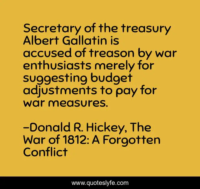 "Donald R. Hickey, The War of 1812: A Forgotten Conflict Quotes." Quoteslyfe.com, 2025. Tue. 09 Dec. 2025. <https://www.quoteslyfe.com/quote/Secretary-of-the-treasury-Albert-Gallatin-is-48159>.
