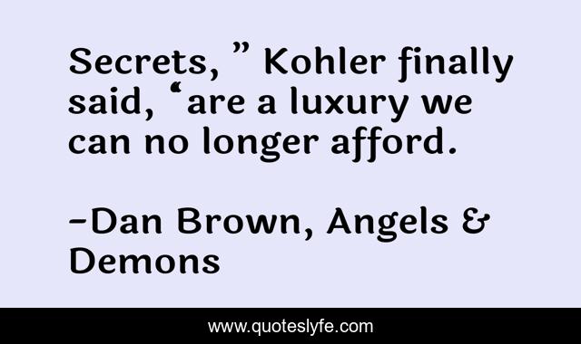 "Dan Brown, Angels & Demons Quotes." Quoteslyfe.com, 2025. Mon. 08 Dec. 2025. <https://www.quoteslyfe.com/quote/Secrets-Kohler-finally-said-are-a-luxury-212349>.