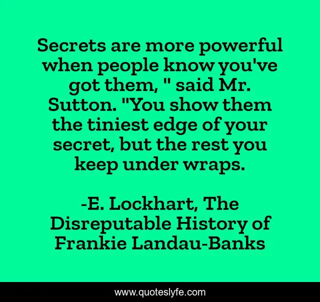 "E. Lockhart, The Disreputable History of Frankie Landau-Banks Quotes." Quoteslyfe.com, 2025. Fri. 05 Dec. 2025. <https://www.quoteslyfe.com/quote/Secrets-are-more-powerful-when-people-know-212379>.