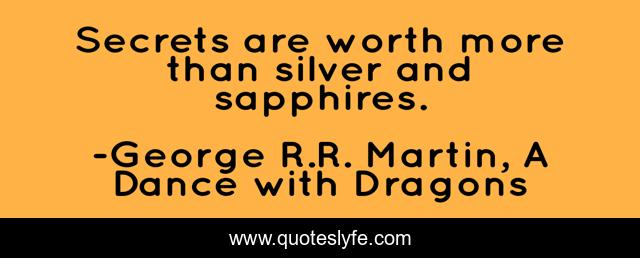This page presents the quote "Secrets are worth more than silver and sapphires.". Author of this quote is George R.R. Martin, A Dance with Dragons. This quote is about sapphires, secrets, silver,.