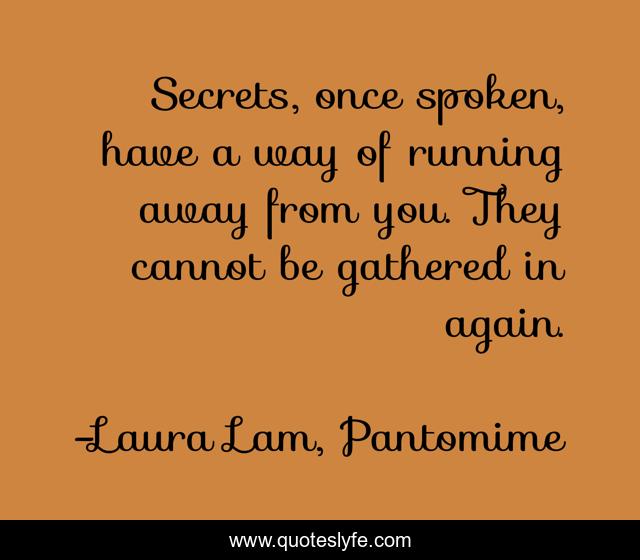 This page presents the quote "Secrets, once spoken, have a way of running away from you. They cannot be gathered in again.". Author of this quote is Laura Lam, Pantomime. .