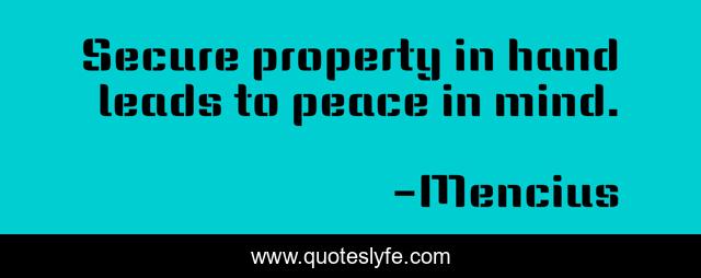 This page presents the quote "Secure property in hand leads to peace in mind.". Author of this quote is Mencius. This quote is about property, mind, hand,.