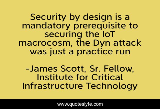 "James Scott, Sr. Fellow, Institute for Critical Infrastructure Technology Quotes." Quoteslyfe.com, 2025. Fri. 05 Dec. 2025. <https://www.quoteslyfe.com/quote/Security-by-design-is-a-mandatory-prerequisite-216377>.