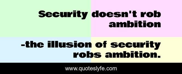 "the illusion of security robs ambition. Quotes." Quoteslyfe.com, 2025. Sat. 06 Dec. 2025. <https://www.quoteslyfe.com/quote/Security-doesn-t-rob-ambition-106532>.