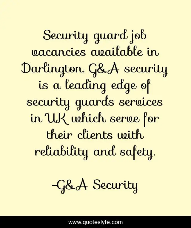 "G&A Security Quotes." Quoteslyfe.com, 2025. Sat. 06 Dec. 2025. <https://www.quoteslyfe.com/quote/Security-guard-job-vacancies-available-in-Darlington-195861>.