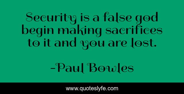 This page presents the quote "Security is a false god begin making sacrifices to it and you are lost.". Author of this quote is Paul Bowles. .
