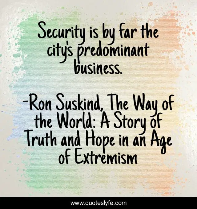 "Ron Suskind, The Way of the World: A Story of Truth and Hope in an Age of Extremism Quotes." Quoteslyfe.com, 2025. Fri. 05 Dec. 2025. <https://www.quoteslyfe.com/quote/Security-is-by-far-the-city-s-236585>.