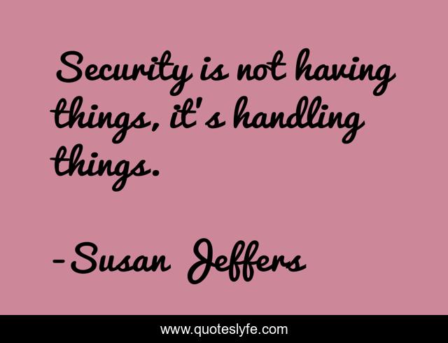 "Susan Jeffers Quotes." Quoteslyfe.com, 2025. Sat. 06 Dec. 2025. <https://www.quoteslyfe.com/quote/Security-is-not-having-things-it-s-235717>.