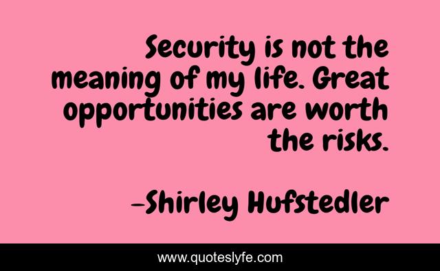 "Shirley Hufstedler Quotes." Quoteslyfe.com, 2025. Fri. 05 Dec. 2025. <https://www.quoteslyfe.com/quote/Security-is-not-the-meaning-of-my-275239>.