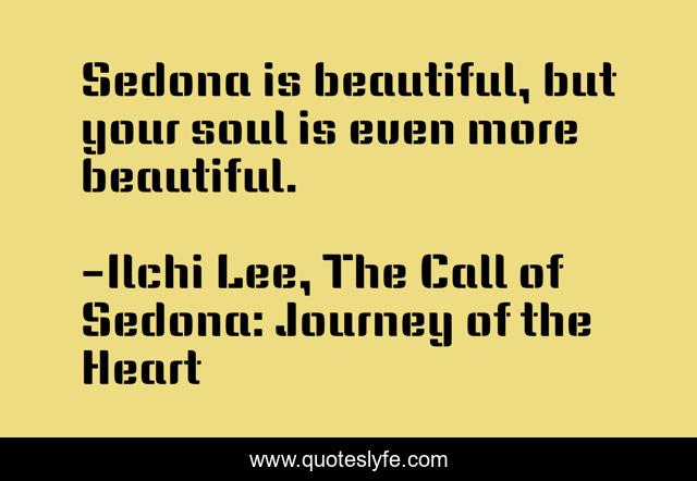 This page presents the quote "Sedona is beautiful, but your soul is even more beautiful.". Author of this quote is Ilchi Lee, The Call of Sedona: Journey of the Heart. This quote is about meditation, soul, sedona,.