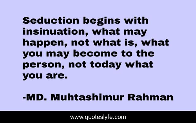 "MD. Muhtashimur Rahman Quotes." Quoteslyfe.com, 2025. Sat. 06 Dec. 2025. <https://www.quoteslyfe.com/quote/Seduction-begins-with-insinuation-what-may-happen-110285>.