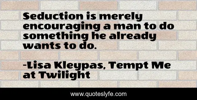 "Lisa Kleypas, Tempt Me at Twilight Quotes." Quoteslyfe.com, 2025. Fri. 05 Dec. 2025. <https://www.quoteslyfe.com/quote/Seduction-is-merely-encouraging-a-man-to-55375>.