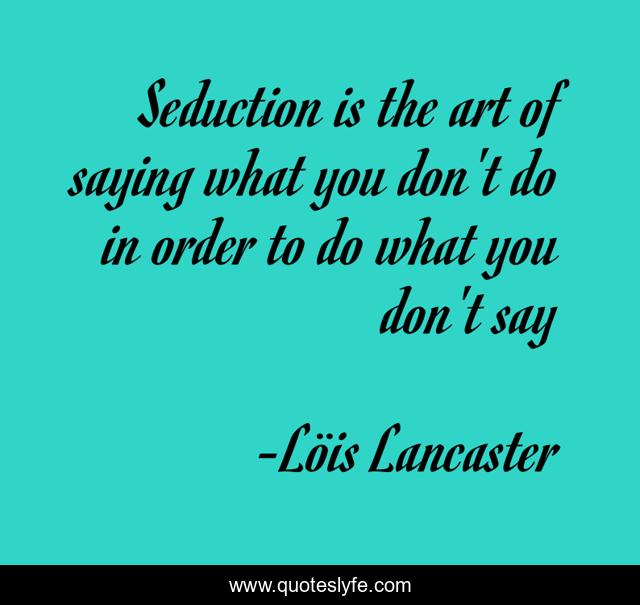 "Löis Lancaster Quotes." Quoteslyfe.com, 2025. Fri. 05 Dec. 2025. <https://www.quoteslyfe.com/quote/Seduction-is-the-art-of-saying-what-149887>.