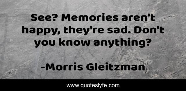 This page presents the quote "See? Memories aren't happy, they're sad. Don't you know anything?". Author of this quote is Morris Gleitzman. .