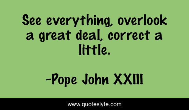 "Pope John XXIII Quotes." Quoteslyfe.com, 2025. Tue. 09 Dec. 2025. <https://www.quoteslyfe.com/quote/See-everything-overlook-a-great-deal-correct-179200>.