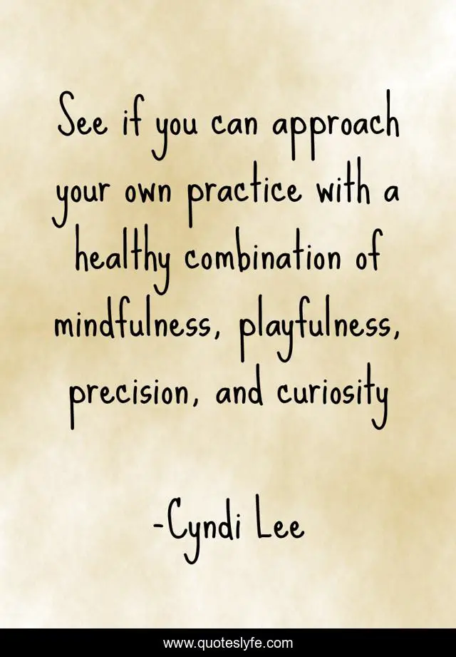 This page presents the quote "See if you can approach your own practice with a healthy combination of mindfulness, playfulness, precision, and curiosity". Author of this quote is Cyndi Lee. This quote is about precision, curiosity, mindfulness,.