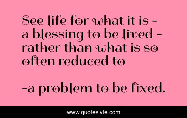 This page presents the quote "See life for what it is - a blessing to be lived - rather than what is so often reduced to". Author of this quote is a problem to be fixed.. .